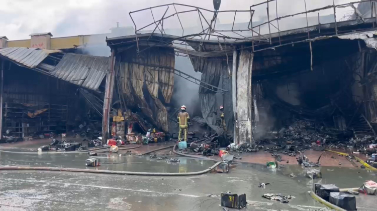 Geriye kalan küle dönmüş dükkanlar dron ile görüntülendi.