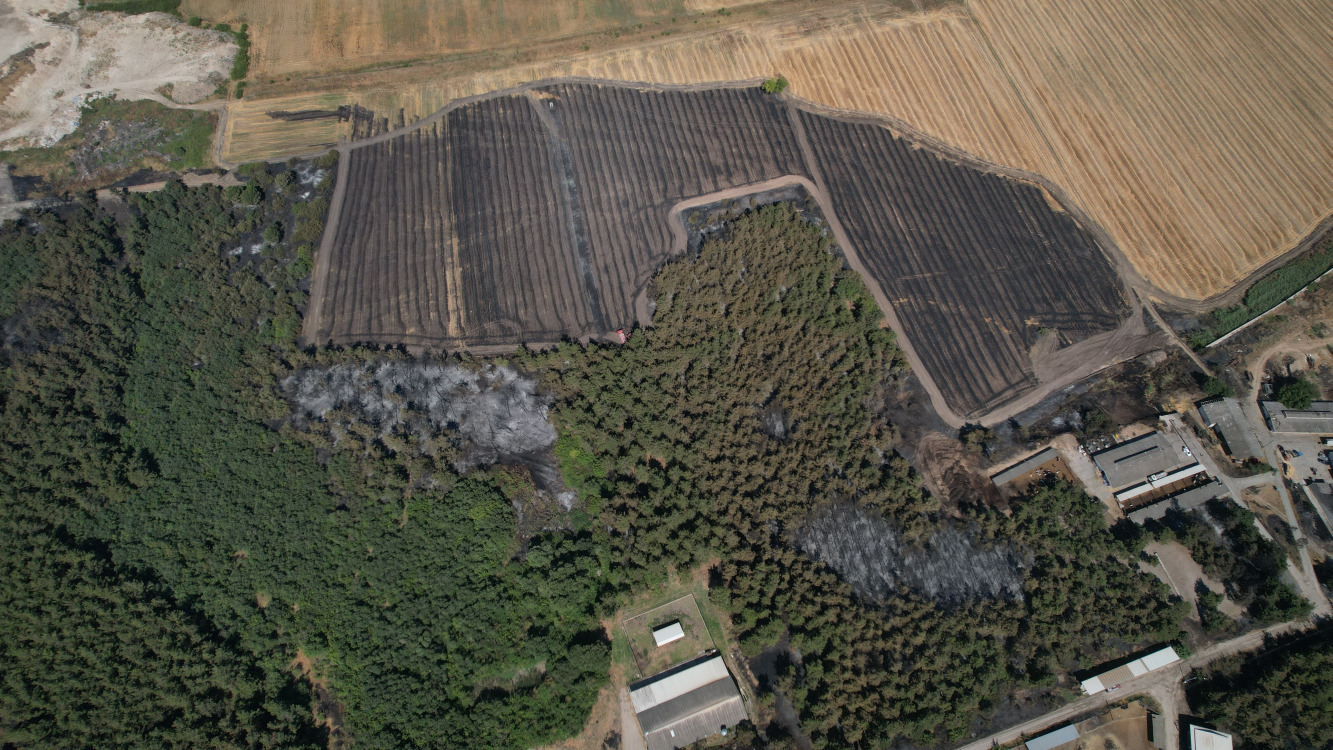 Sabahın ilk ışıklarıyla beraber Uludağ Üniversitesi'nin alevlere teslim olan Görükle kampüsü içindeki ormanlık alanları havadan dron ile görüntülendi. Görüntülerde çamlarla bezeli ormanlık alanın yeşilden griye dönmesi yürekleri dağladı.