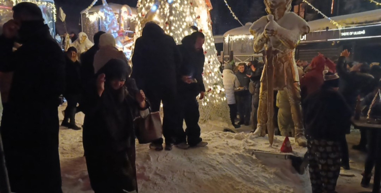 Uludağ’da müzik, eğlence ve havai fişek gösterileriyle süren yılbaşı kutlamaları, renkli anlara sahne olurken, yaşlı teyzenin dansı gecenin unutulmaz anı olarak hafızalara kazındı.