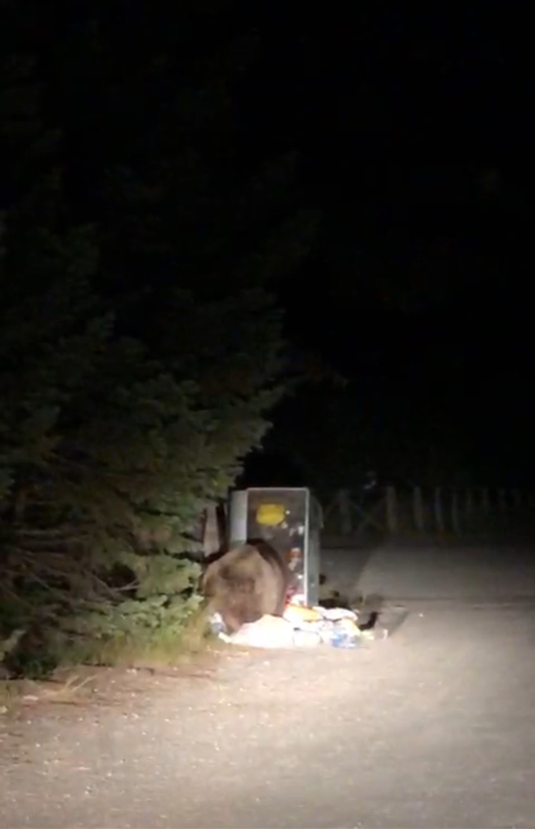 Uludağ'da aç kalan ayı, çöp konteynerlerinde yemek ararken görüntülendi.