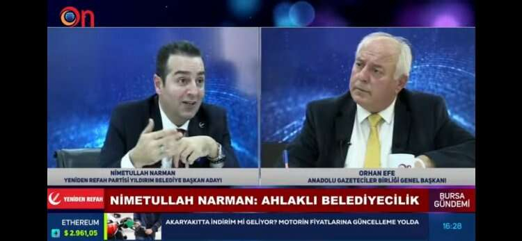 Yeniden Refah Partisi Bursa Yıldırım Belediye Başkan Adayı Nimetullah Narman On Medya Ekranlarında yayınlanan ‘Bursa Gündemi’ programında çarpıcı açıklamalarda bulundu.