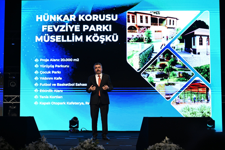 "Şu anda çok özel bir proje olan Hünkar Korusu'nu Yıldırım'a kazandırmak için çalışıyoruz. Hünkar Korusu Bursa'ya hizmet edecek özel bir bölge olacak. 60 dönümlük bir alan. Osmangazi ve Yıldırım'ın orta noktasında özel proje. Değirmenönü'nde 100 dönümlük parka çalışıyoruz. 100. Yıl Orman Parkı 360 dönümlük bir alanda olacak. Burayı da kiraladık Bakanlıktan. Büyük orman parkı kazandıracağız. Küreklidere'de bir çocuk köyü inşa edeceğiz."