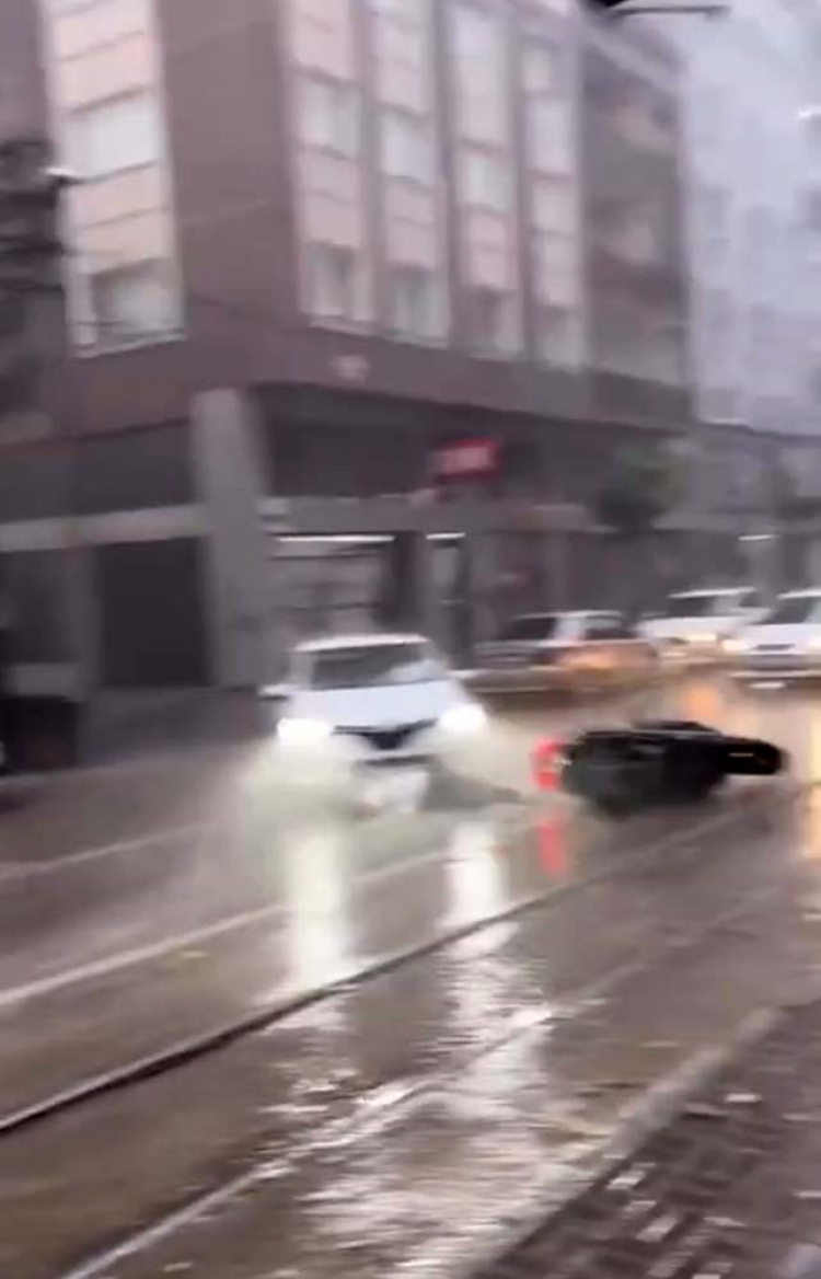 Yağmurun şiddetini çekerken az kalsın moto kuryenin öldüğü kazayı çekecekti.
