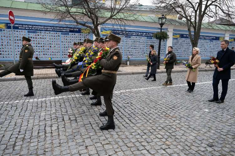 Avrupa Komisyonu Başkanı Ursula von der Leyen ise saldırıların başladığı günden itibaren Ukrayna’yı savunan birlikleri överek “"Kiev güçlü durdu. Cesaretiniz Putin'in durdurdu. Kaçmadınız ya da ürkmediniz. Ukraynalı kahramanlardan oluşan küçük bir birlik, son nefesinize kadar savaşarak işgalcileri geri püskürttü. Rusya'nın Ukrayna'nın kalbine yönelik saldırısını durdurmayı başardınız. Ülkenizi kurtardınız, tüm Avrupa'yı kurtardınız” ifadelerini kullandı.