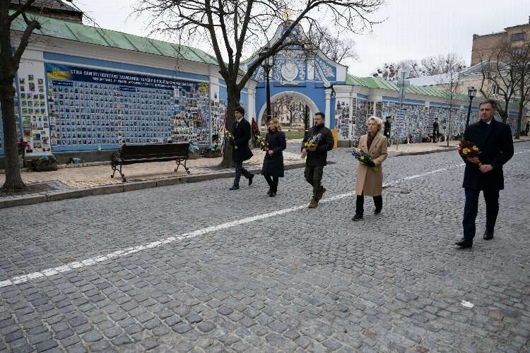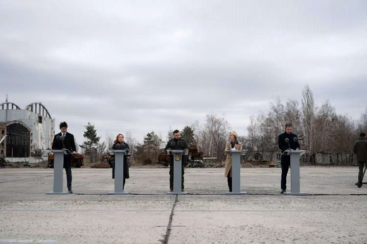 Belçika Başbakanı Alexander De Croo, İtalya Başbakanı Giorgia Meloni, Kanada Başbakanı Justin Trudeau ve Avrupa Komisyonu Başkanı Ursula von der Leyen, Rusya-Ukrayna Savaşı’nın ikinci yılı geride kalırken Ukrayna’ya dayanışma için Kiev’e gelerek Gostomel Havalimanı’nda Ukrayna Devlet Başkanı Vladimir Zelenskiy ile basın toplantısı düzenledi.