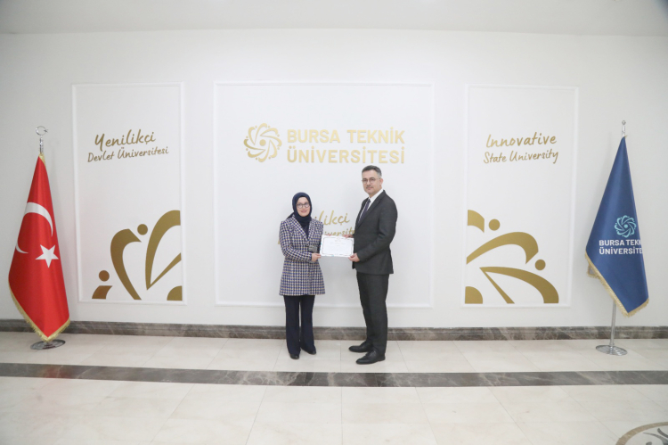 Bursa Teknik Üniversitesi’nde kamuda 20 ve 30 yıllık fiili hizmet süresini tamamlayan 26 personel, düzenlenen törende plaket ve belgelerle onurlandırıldı. Program Mimar Sinan Yerleşkesi’nde gerçekleştirildi.