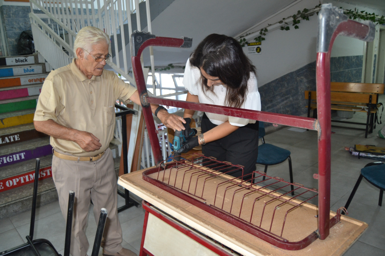 50. yıl Ortaokulu Müdür Yardımcısı Hatice Aslan, yaptığı konuşmada “Okulumuzda 2024-2025 eğitim öğretim yılı için hazırlıklarımıza devam ediyoruz. Bu hazırlıklara yaklaşık 1 ay önce başlamıştık. Okulda gerçekleştirdiğimiz çalışmalar kapsamında yine okulumuzun eski velilerinden marangoz Necmettin Umut ile birlikte yıpranan öğrenci sıralarını tamamen yeniledik. Bununla birlikte kırılan sandalyeleri yeniden tamir ederek boyama işlemini gerçekleştirdik. Ayrıca eskiyen perdeleri de değerlendirerek masa örtüsü haline getirdik. Okulumuzda atıl durumda olan 20 civarında da sıramız vardı. Bir çoğunun metal kısımlarında kırılmalar olduğu için kullanılamıyordu. Kırılan bu bölümleri önce kaynak yaptırdık. Ardından yeniledik ve kullanıma hazır hale getirdik. Yine yetersiz durumda olan öğretmen sandalyelerini de atıl durumda olan sandalyeleri yenileyerek tamamladık. Geri dönüşümden elde edilen gelirle yapıldı