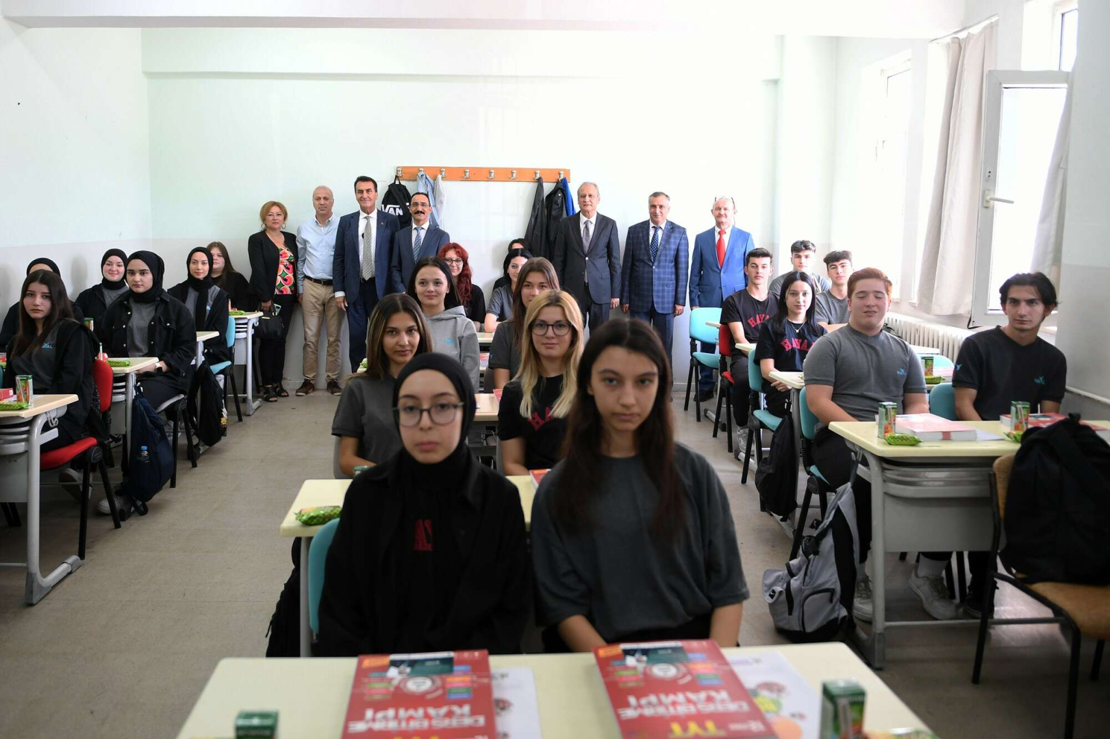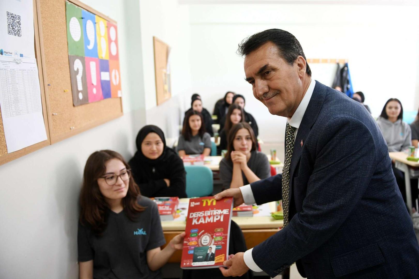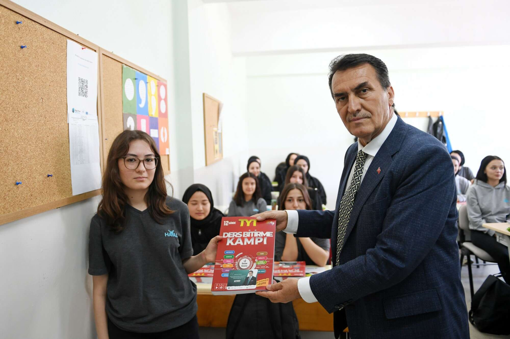 TYT ve AYT Ders Bitirme Kampı formatında hazırlanan kitap setlerini Hasan Ali Yücel Anadolu Lisesi’nde öğrencilere dağıtan Başkan Dündar, “Destek bizden, başarı sizden” mesajı verdi.