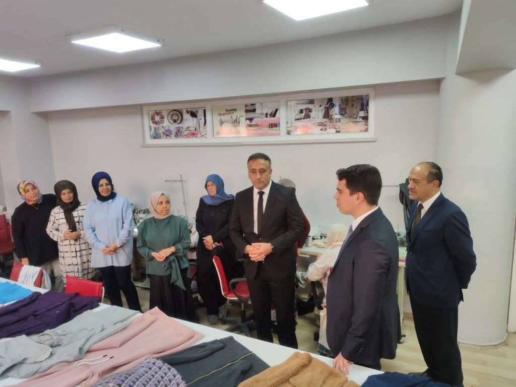 Kaymakam Tuna, H.E.M binasında sınıfları dolaşarak, çeşitli branşlarda kurs gören öğrencilerin yaptıkları eserleri yerinde inceleyip kursiyerlerle sohbet etti.