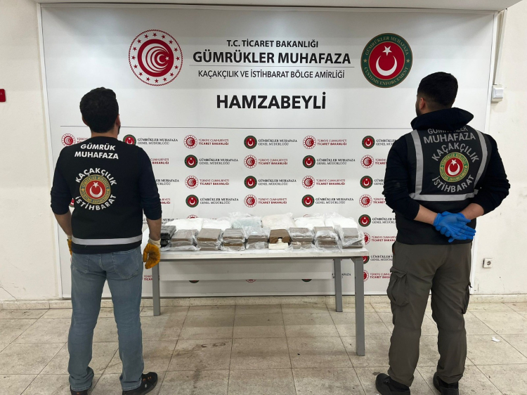 Bakanlıktan yapılan yazılı açıklamaya göre, Gümrük Muhafaza ekiplerinin kaçakçılıkla mücadele faaliyetleri kapsamında yaptığı risk analizi ve hedefleme çalışmaları sonucunda, Hamzabeyli Gümrük Muhafaza Kaçakçılık ve İstihbarat Bölge Amirliği ekipleri bir uyuşturucu madde yakalamasına daha imza attı. Türkiye’ye giriş yapmak üzere gelen şüpheli bir tır mercek altına alındı. Yakın takibe alınan araç detaylı aranarak, 103 milyon lira değerinde kokain, metamfetamin ve ecstasy cinsi uyuşturucu madde ele geçirildi.