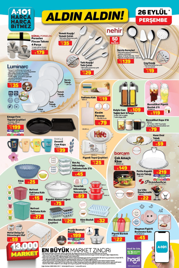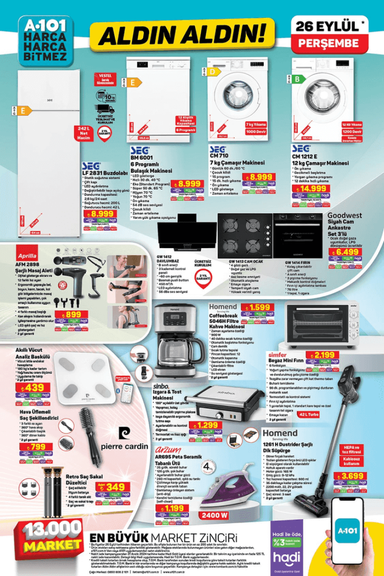 A101 MARKET 26 EYLÜL 2024 KATALOĞU FİYAT LİSTESİ