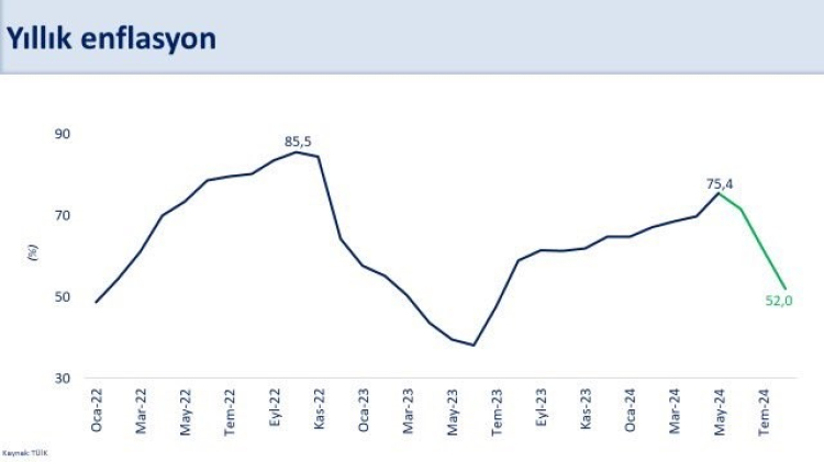 “Dezenflasyon belirginleşiyor. Yıllık enflasyon son 3 ayda 23,5 puan gerileyerek yüzde 52 gerçekleşti. Geçici unsurların da etkisiyle aylık enflasyon ağustosta yüzde 2,5, yönetilen-yönlendirilen fiyatlar hariç ise yüzde 1,4 gerçekleşti. Aylık gıda enflasyonu 4 yıl sonra negatif oldu. Güçlenen finansal istikrar, ekonomideki dengelenme ve beklentilerdeki iyileşmenin etkisiyle son çeyrekte aylık enflasyonun ana eğiliminde düşüş bekliyoruz.