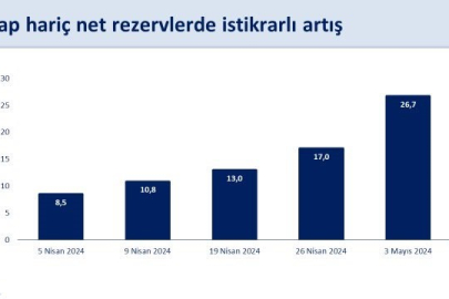 Hazine ve Maliye Bakanı Mehmet Şimşek, Türkiye Cumhuriyeti Merkez Bankası’nın (TCMB) döviz pozisyonunun iyileştiğini belirterek, "Swap hariç net rezervler nisan başından itibaren 26,7 milyar dolar arttı” dedi.