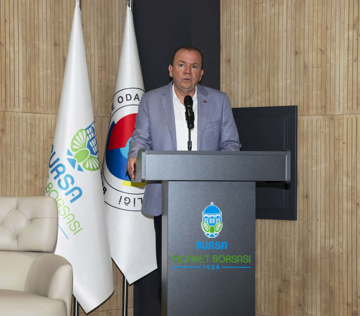 "Bursa, tarım ürünleri ihracatında istediği noktada değil" Bursa’nın sahip olduğu tarımsal üretim çeşitliliği ve dünyaca ünlü gıda markalarıyla aynı zamanda önemli bir tarım kenti olduğunu vurgulayan Başkan Özer Matlı, ahududu, deveci armudu, Bursa siyah inciri başta olmak üzere pek çok meyve ve sebze ürününde Türkiye’de ilk sırada yer aldığını kaydetti. Matlı, tarım alanlarının giderek daralması, gıda firmalarının hızlı kentleşme sonucu şehrin içinde sıkışıp kalması, gençlerin tarımdan uzaklaşması, tanıtım ve pazarlama eksikliği gibi pek çok nedenden ötürü Bursa’nın tarım ihracatında istediği noktayı yakalayamadığı ifade etti.