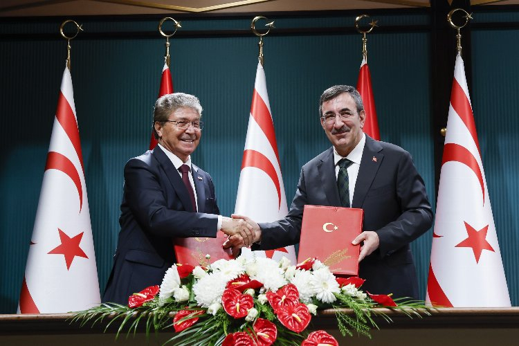 Cumhurbaşkanı Yardımcısı Cevdet Yılmaz, Kuzey Kıbrıs Türk Cumhuriyeti Başbakanı Ünal Üstel ile Cumhurbaşkanlığı Külliyesinde 2024 İktisadi ve Mali İşbirliği Anlaşması imza töreni ve ortak basın açıklaması gerçekleştirdi. Yılmaz, tarafların karşılıklı görüşmeleri ve katkıları ile bir süredir devam eden 2024 Yılı İktisadi ve Mali İşbirliği Anlaşması’na ilişkin istişarelerimizi verimli bir şekilde tamamladıklarını belirtti. Türkiye ve Kuzey Kıbrıs Türk Cumhuriyeti arasındaki iş birliği ve kardeşlik bağlarını daha da güçlendirecek, daha güçlü bir KKTC'nin inşasına katkıda bulunacak önemli konularda fikir birliğine vardıklarını vurguladı. Kıbrıs Türk halkının refahını ve sürdürülebilir bir ekonomiye kavuşmasını sağlamak amacıyla gerekli adımların atılması noktasında kararlı olduklarını altını çizen Yılmaz, “Bugün imzaladığımız 2024 Yılı Anlaşmamızda yer verdiğimiz ana perspektife geçmeden önce, geçtiğimiz 1 yılda neler yapıldı, mevcut anlaşma ile hangi alanlarda ne gibi kazanımlar elde ettik onlara kısaca değinmek istiyorum. Geçtiğimiz yıl Haziran ayında yürürlüğe giren 2023 yılı İktisadi ve Mali İşbirliği Anlaşması çerçevesinde KKTC’ye 9,5 milyar lira ödenek tahsis edilmişti. Bu rakamın yaklaşık 7,86 milyar lirası harcanmıştır. Burada şunun altını çizmek isterim; bir anlaşma, program veya faaliyetin başarısını ölçen göstergelerden biri de bütçe gerçekleşme oranıdır. Bu kapsamda 2023 yılı Anlaşmasında gerçekleşme oranı yüzde 83 olup, bu oranın son dönemlerde yapılan Anlaşmalar içinde en yüksek oran olduğunu ayrıca belirtmek isterim” ifadelerini kullandı.