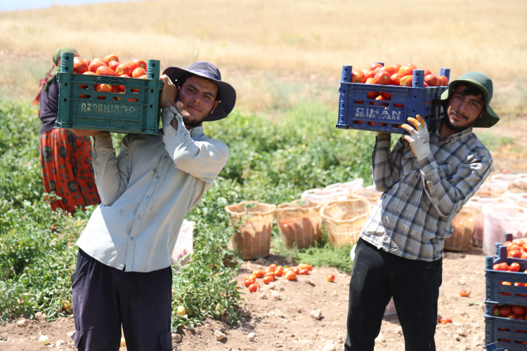 Elazığ'a çalışmak için geldiklerini belirten Murat Alınmış, "Burada domates ektik halkımıza satıyoruz. Hale de götürüyoruz kurutmalık ve salçalık için de ektiğimiz domatesleri veriyoruz. Domatesi tarlada 8 liraya veriyoruz. Kendileri gelip buradan alabilirler. Domates manavda 25 lira onun yerine gelip 8 liraya buradan alsınlar. Saat sabah 07.00'da işe başlıyoruz akşam 17.00 veya 18.00'da bırakıyoruz. Şu anda bulunduğumuz tarlada 11 kişi çalışıyor. 2 bin dönüm alanda domates ekildi, hasat devam edecek. 1 buçuk ay hasat devam eder. Kurutmalığa da veriyoruz vatandaşlara da satış yapıyoruz. Günlük 20 ton domates topluyoruz. Daha doğrusu göndereceğimiz yere bağlı oluyor" ifadelerini kullandı.