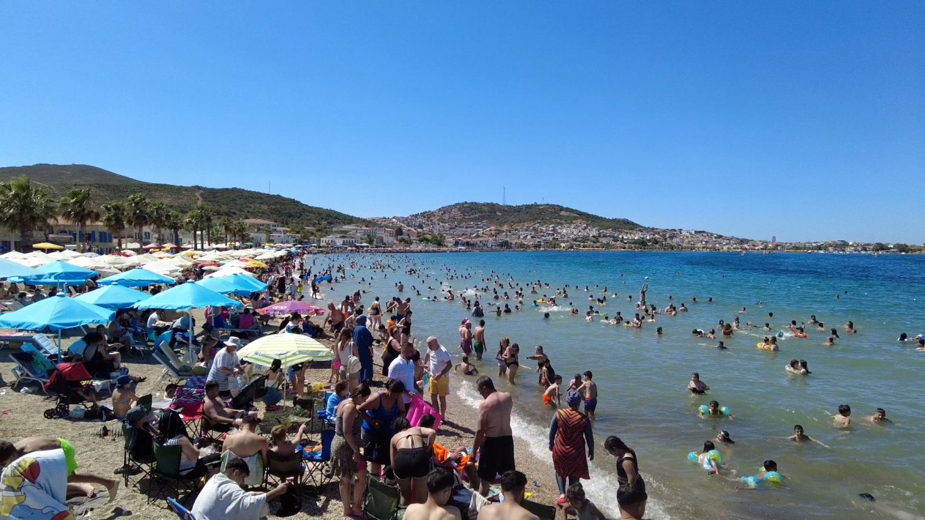 Foça'nın denize girilebilecek ve tatil yapabilecek en güzel yeri olarak bilinen Yeni Foça'da, iğne atsan yere düşmez dedirtecek şekilde yoğunluk oluştu.