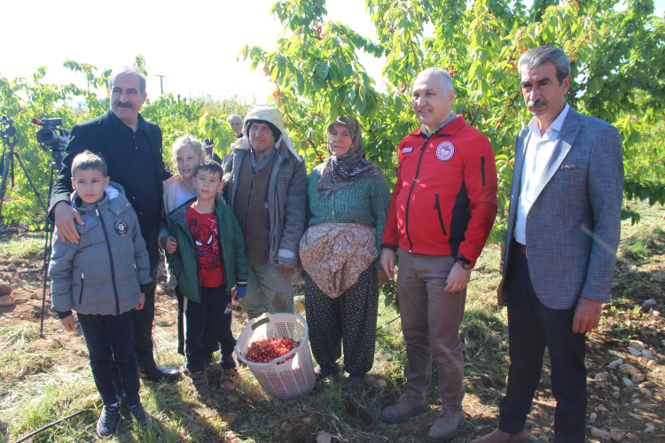 "Manisa gene bir geleneği daha bozmadı. Kuzey Yarımküre'nin açık alanda ilk kirazını 13 Nisan tarihi itibariyle hasadını gerçekleştiriyoruz. Yaşadığımız 10, 11, 12 Nisan tarihlerindeki don afetleri hakikaten tüm Türkiye'de tarımsal anlamda çiftçilerimizi üzdüğü gibi bakanlık olarak bizleri de derinden üzmüştü. Ama bir taraftan da üretim devam ediyor. Gördüğünüz gibi şu anda Sancaklı bölgesindeyiz. Bir taraftan da Kuzey Yarımküre'nin açık alandaki ilk kirazını çıkarmanın da mutluluğunu yaşıyoruz. İnşallah don afetinden dolayı olan yaralar da en kısa sürede sarılacak. Tabii bununla beraber Manisa 2 milyon 800 binden fazla bir kiraz ağacı varlığına sahip. Alan anlamında Türkiye'de üretim alanı anlamında ikinci konumda olan bir şehiriz. Ama malumunuz olduğu üzere bu erkencilik durumu bizim kirazımızı katma değerli hâle getiriyor ve ihracatta da talep konusu ediyor. Dolayısıyla burada ben üreticilerime hem teşekkür ediyorum, hem tebrik ediyorum. Bu ürünü 13 Nisan'da çıkarmak kolay değil. Sağlıklı bir şekilde arkamızda da gördüğünüz gibi kirazı yetiştirerek bugün hasada getiren tüm çiftçilerimize en kalbi şükranlarımı sunuyorum. İnşallah bereketli bir sezon geçireceğiz ve katma değerli bir şekilde de dünyanın dört bir tarafına kirazımızı, erkenci kirazımızı da ihraç etmiş olacağız. Manisa kirazda 46 bin ton üretim gerçekleştiren bir şehir. Sancaklı bölgesinde yani merkeze yakın bölgede başlayan hasat uzun bir süre yaklaşık 2 ay sonra Demirci'de devam eder. Dolayısıyla uzun bir periyotta da kiraz hasadı devam eden bir ildeyiz. İlk hasadı bugün gerçekleştiriyoruz. Son hasadı da gene Demirci ilçemizin en yüksek yerlerinde yapmış olacağız. Bugünkü bu hasatla beraber kirazla ilgili hasat süreci de başlamış oldu. Kirazda erkencilik, her zaman kazanç anlamında çiftçimize her zaman daha fazla gelir getiren bir durumdur. O yüzden biz erkenciliği önemsiyoruz. Erkencilik ürünlerin, daha iyi fiyattan satılmasını sağlar ve çiftçimizi de memnun eder. Erkencilik her zaman avantajlıdır. Bu bölgede bu anlamda kıymetli bir bölge."