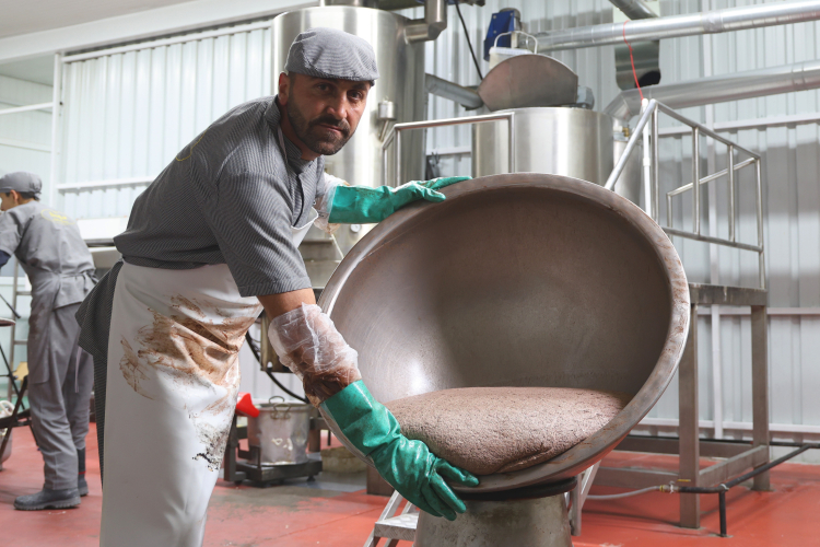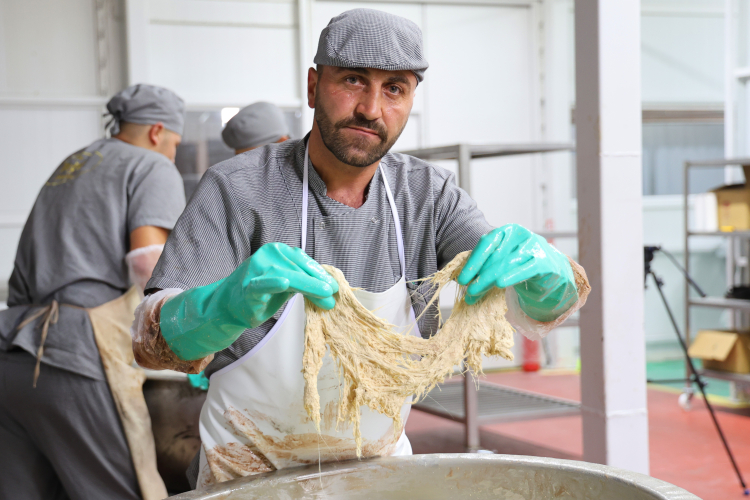 Helva yapımında şeker yerine hurma suyu tercih ettiklerini belirten Aktaş, “Helva üretimi yapıyoruz. Bu helvalarımızın tahinli, kakaolu, fıstıklı ve hurma suyuyla tatlandırdığımız çeşitleri var. Hurma suyuyla tatlandırılmış helva çeşitleri son günlerin trendi. Helva yapımında hurma suyunu şeker yerine kullanıyoruz. Aynı zamanda hurma suyunun birçok faydası var. İçerdiği vitaminler neticesinde sindirime yararlı oluyor. Özellikle çocuklar ve şeker hastaları için oldukça faydalı. Biz makinelerle değil tamamen geleneksel usulde üretiyoruz. Helvanın daha çok telli olması için geleneksel yöntemi bırakmıyoruz. Aynı şekilde kutulara dolum işlemlerini de yine kendimiz yapıyoruz. Bu lezzeti de tamamen eski usul yapmamıza bağlıyoruz. Yaz aylarında gurbetçilerin gelmesiyle talep de artıyor. Günde ortalama beş kazan üretiyoruz bu da bir tona tekabül ediyor. Hem şehir dışı hem de yurtdışından oldukça rağbet görüyor” dedi.