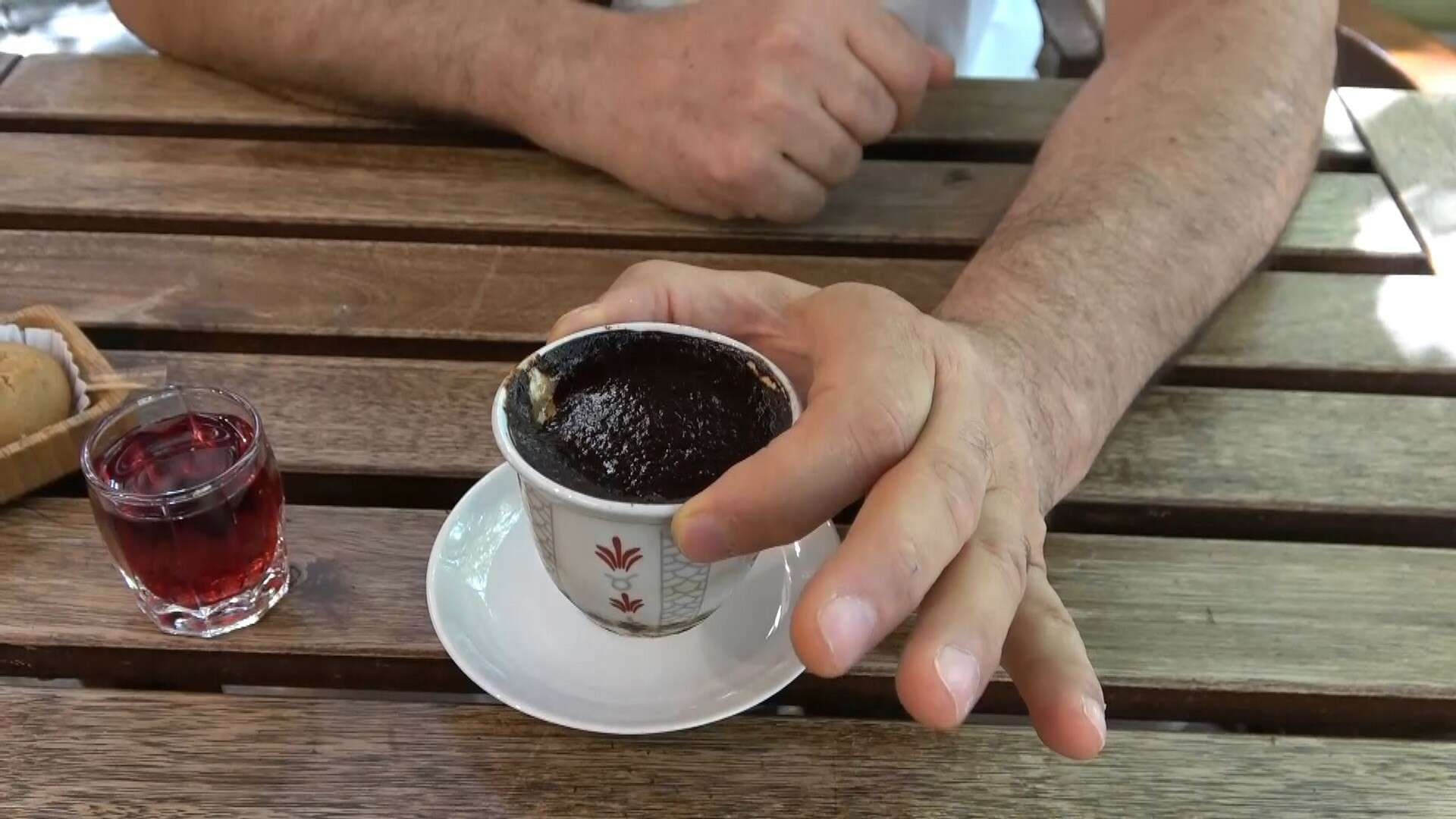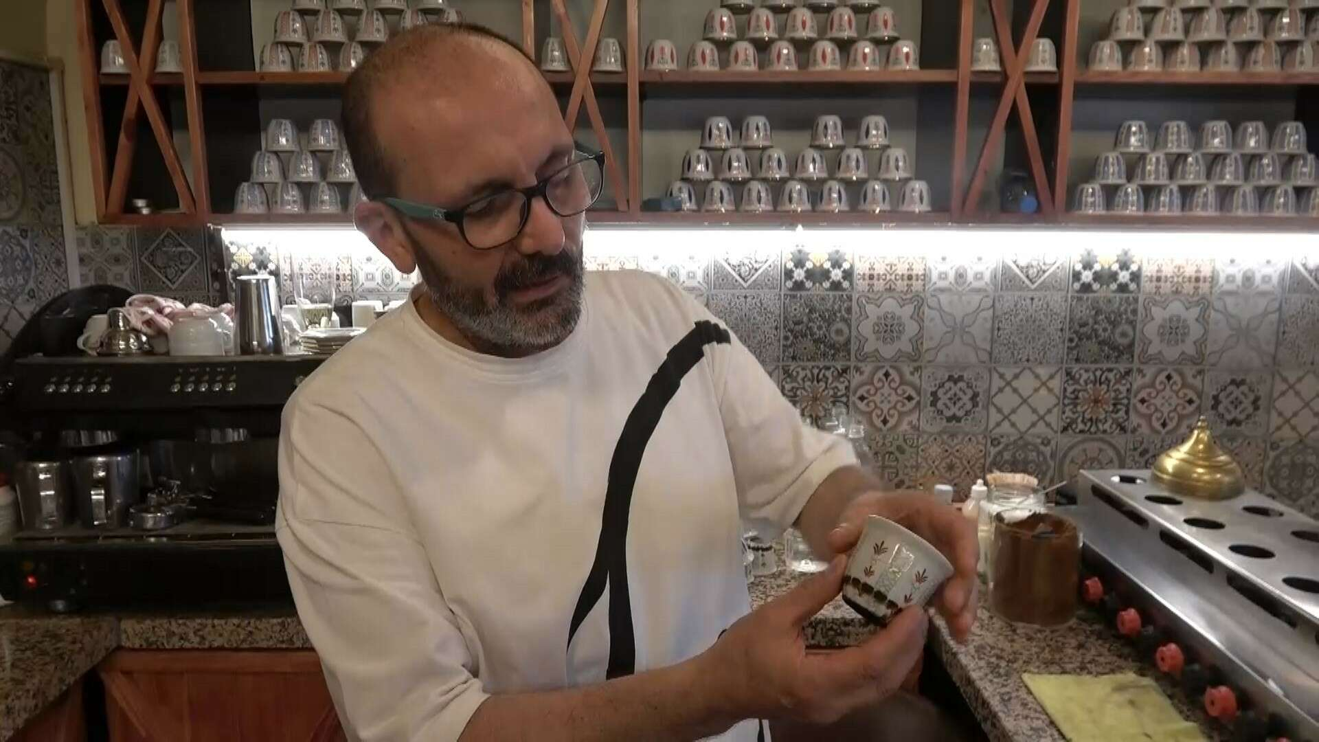 Ayrıca dünyada batmayan tek kahvedir. Üzerinde adeta sufle gibi bir tabaka oluşur. İçiminde hem suyunu hem de telvesini içiyorsunuz. Özel bir kahvedir, yanında nar şerbeti ikram ediyoruz” şeklinde konuştu.