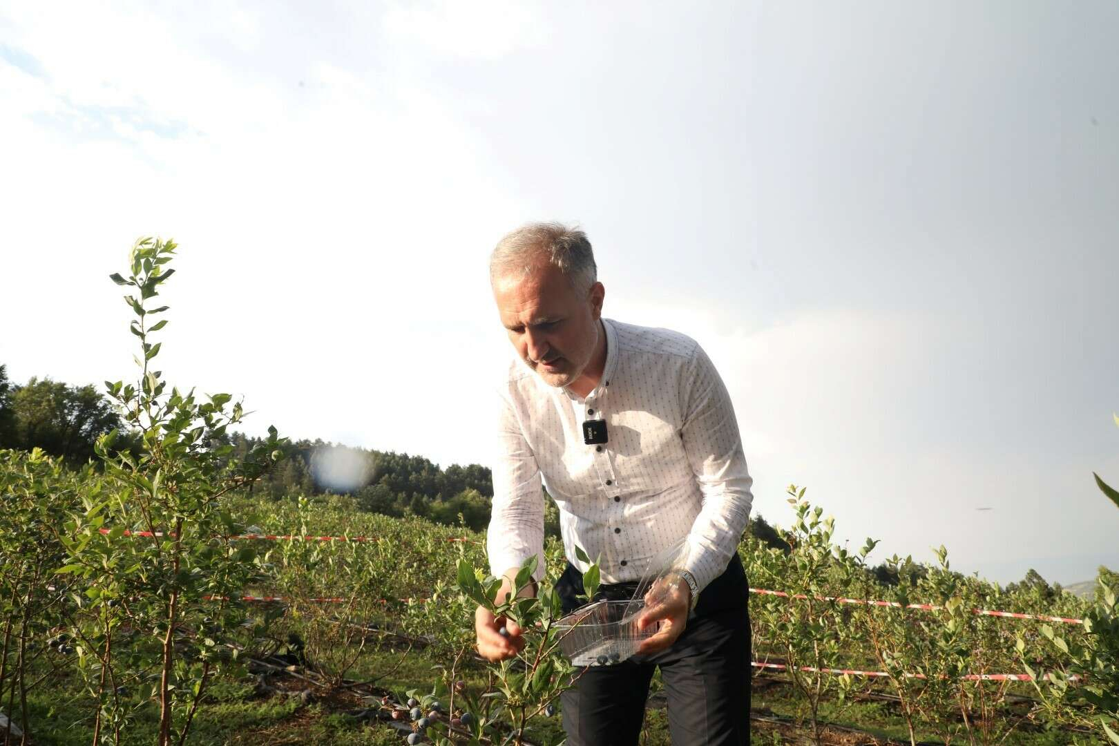 Mavi yemişin anlatmakla bitmeyen özellikleri olduğuna dikkat çeken Başkan Taban, “Özellikle antioksidan özelliği günümüzde bana göre en önemli tarafı. Pek çok hastalığa şifa olduğu ifade ediliyor. Yurt dışından da bu bölgemize yabancı heyetler, alım heyetleri gelerek buradan ürün alımları gerçekleştiriyorlar. Bulunduğumuz tarlada da bugün Dubaili bir heyetle ihracat anlaşması yapıldı. Burayı daha da geliştirip depolama alanları gibi eksikleri de girerek, ekiliş alanındaki ihtiyaçları gidererek daha fazla verim alınacak hale gelmek istiyoruz. Üreticilerimize hasat dönemi hayırlı bereketli olsun” diye konuştu.