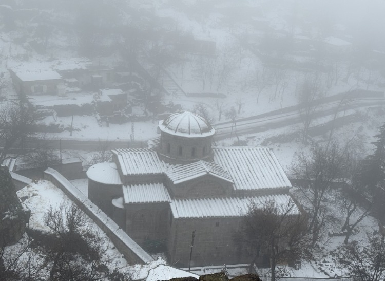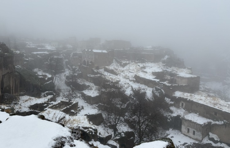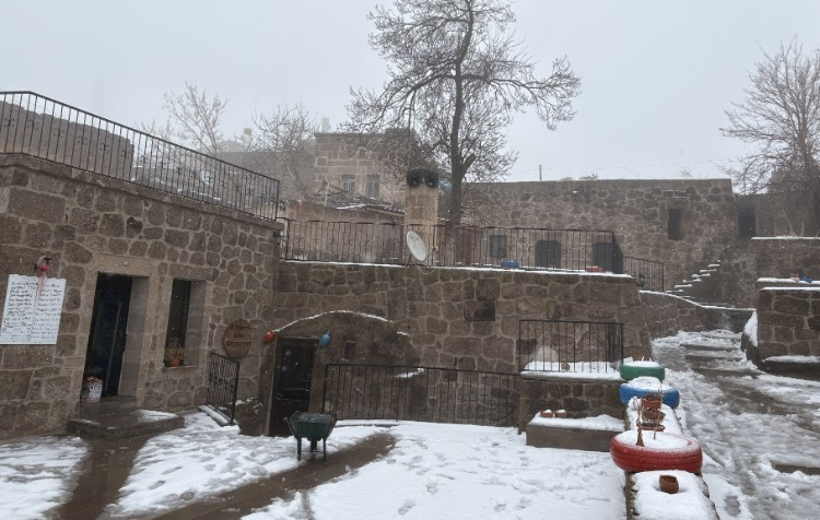 Aksaray'ın yüksek kesimlerinde etkili olan kar yağışı 2 gündür devam ederken, tarihi mekanlarıyla yerli ve yabancı turistlerin ilgi odağı olan Güzelyurt ilçesi de beyaza büründü.