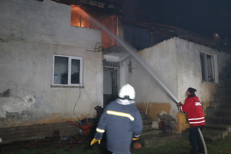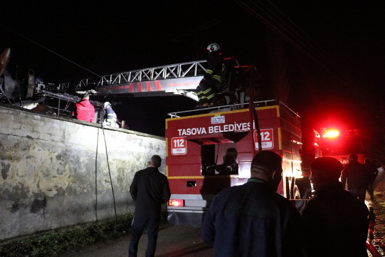 Amasya'nın Taşova ilçesinde üst katı ahşap olan iki katlı evde yangın çıktı.