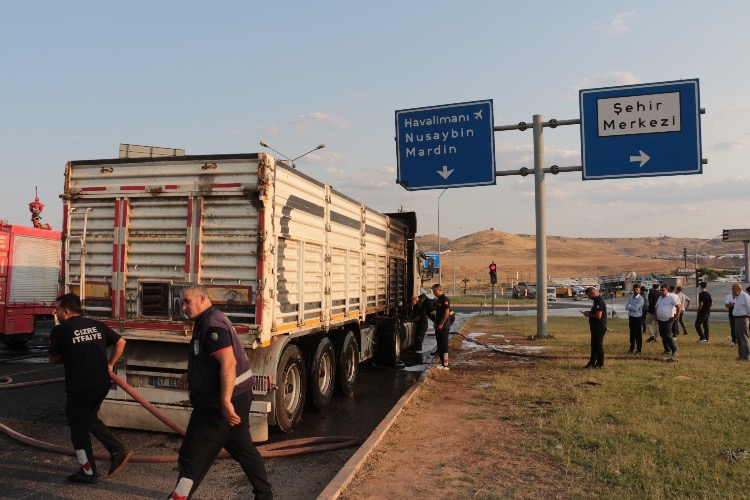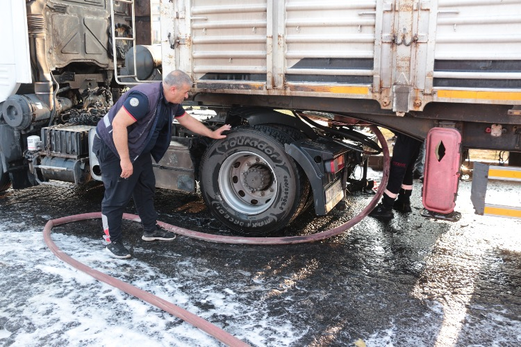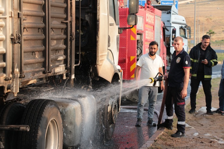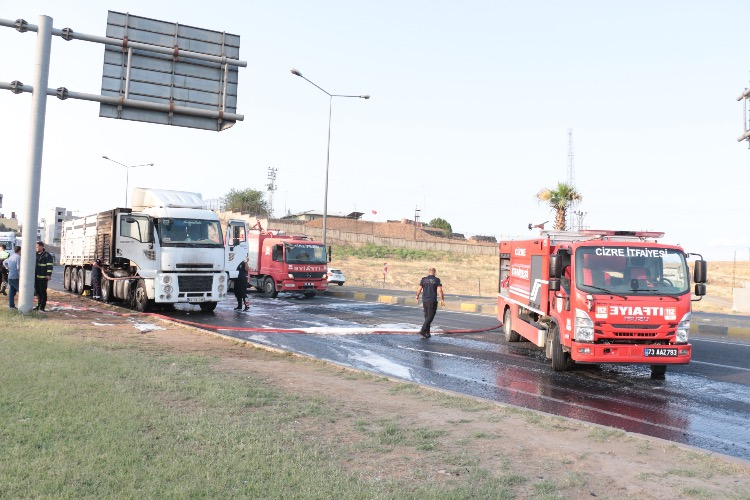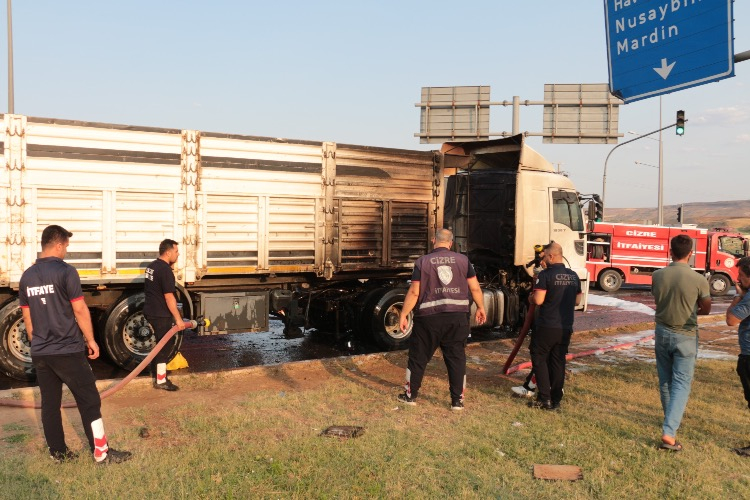 Şırnak’ın Cizre ilçesinde seyir halindeki tırın balatalarında oluşan ısınma, yangına neden oldu.
