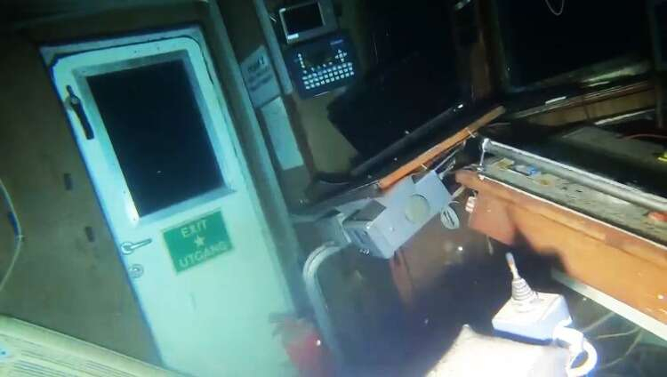 İmralı Adası güneyinde batan kuru yük gemisinin içi, dalgıçlar tarafından böyle görüntülendi.