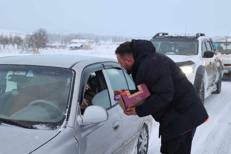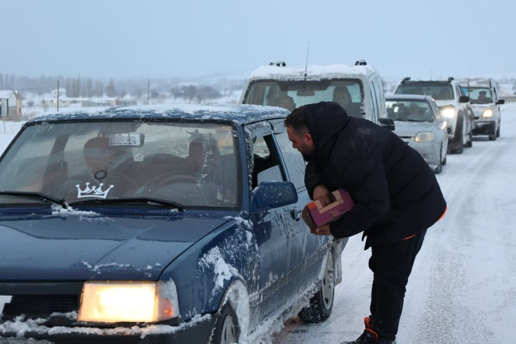 Kayseri’nin Bünyan ilçesinde etkili olan yoğun kar yağışı hayatı olumsuz etkilerken, Bünyan Belediyesi sahada görev yapan ekipleri ve yolda kalan vatandaşları yalnız bırakmayarak, ikramda bulundu.