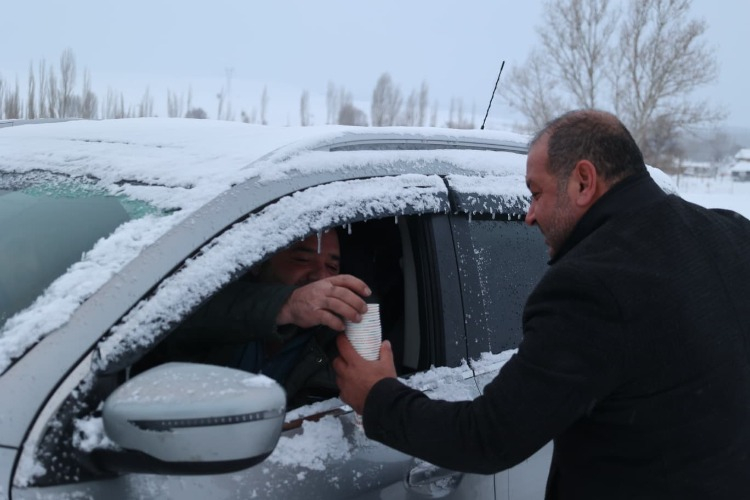 Soğuk hava şartlarına rağmen fedakârca görev yapan personel ve vatandaşlarla yakından ilgilenen Başkan Selahattin Metin, "Zorlu kış şartlarında sahada görev yapan güvenlik güçlerimizin ve yolda kalan hemşehrilerimizin yanında olmak bizim için bir sorumluluktur.