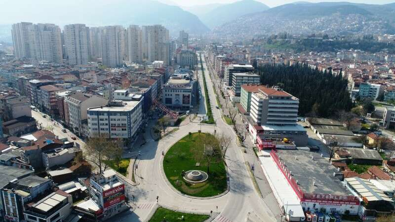 BURSA’NIN BOŞ MEYDAN VE CADDELERİ HAVADAN GÖRÜNTÜLENDİ