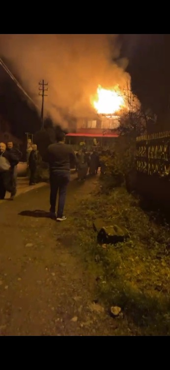 Zonguldak'ın Alaplı ilçesinde bir evin çatısında çıkan yangına çok sayıda itfaiye ekibi sevk edildi.
