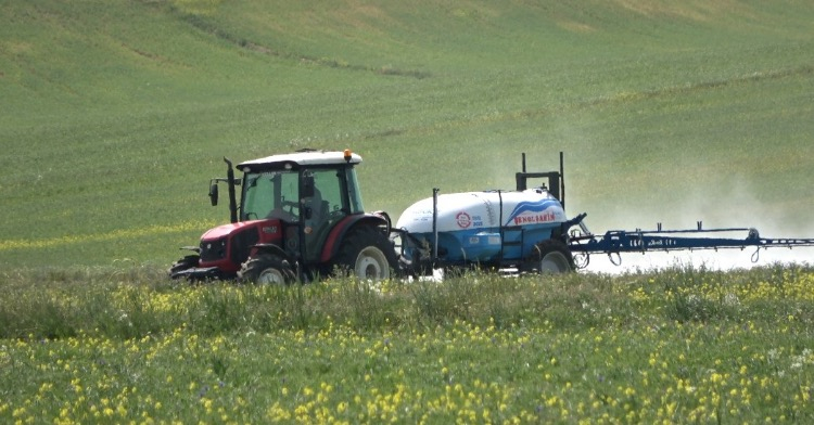 15 senedir çiftçilikle uğraşan Murat Şahbaz, nohut, mercimek, buğday yetiştirdiğini söyledi. Şahbaz, "Burası kıraç. Sulu arazimiz yok. Bu yüzden nohut, mercimek ve buğday yetiştiriyoruz. Şu an nohudun hastalık ilacını atıyoruz.