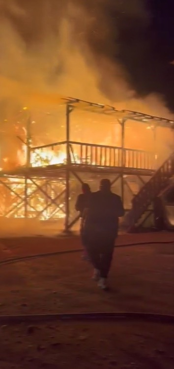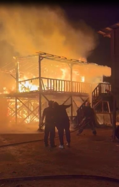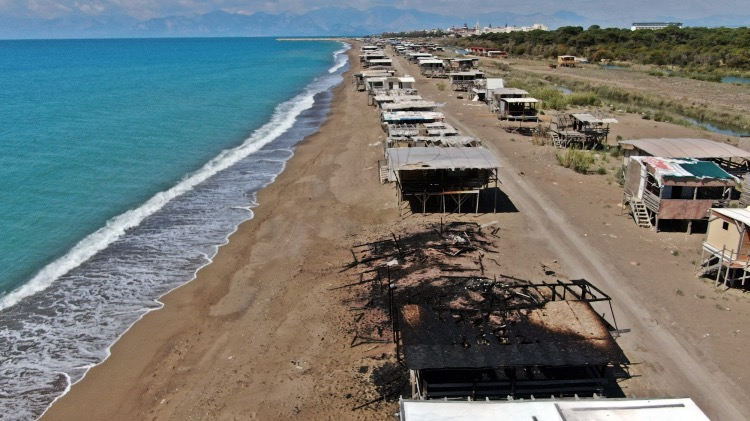 Antalya’da otellere komşu, denize sıfır inşa edilen çardaklarda çıkan yangında 2 çardak kül oldu.