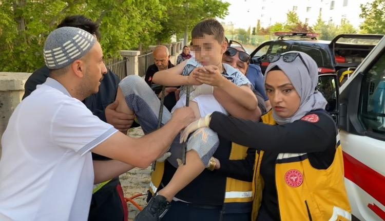 Duvardan düşen çocuğun koluna demir saplandı! İşte o görüntüler