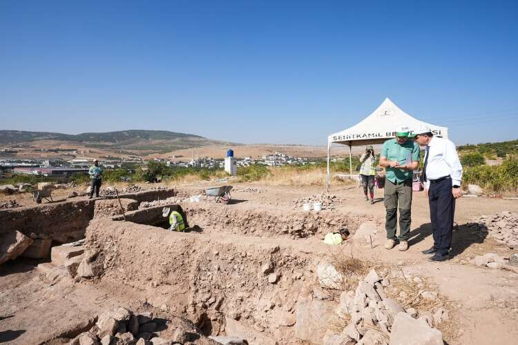 Şehitkamil Belediye Başkanı Rıdvan Fadıloğlu, Dülük Antik Kenti Keber Tepesi Doliche yakasında devam eden kazı çalışmalarını inceledi. Başkan Fadıloğlu