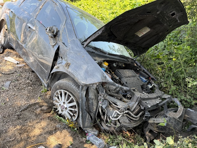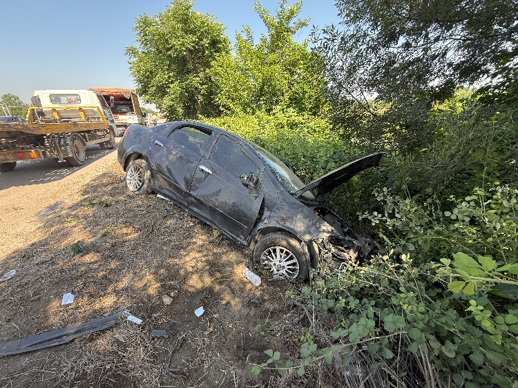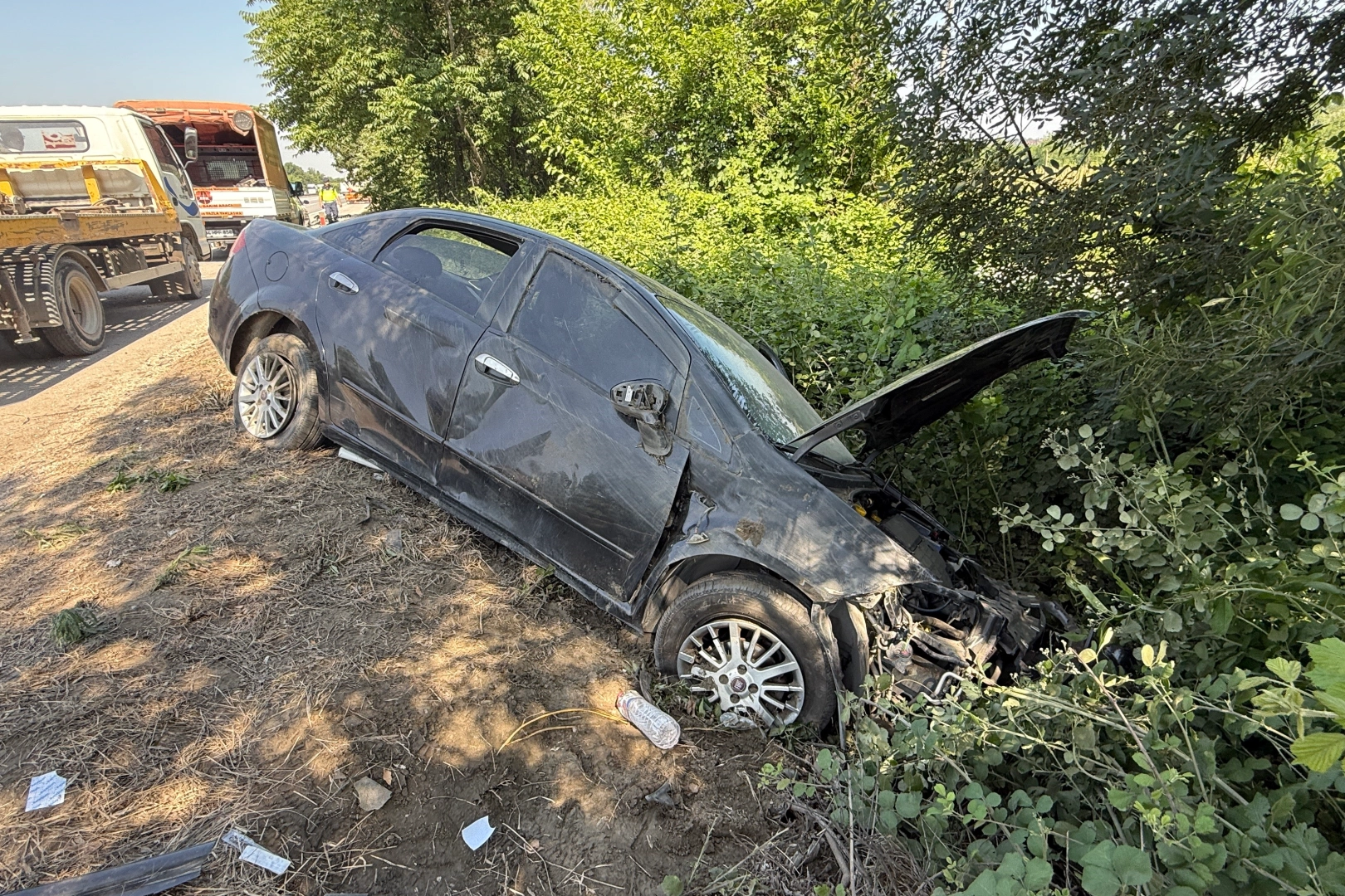 Anadolu Otoyolu Sakarya-Kocaeli geçişinde kontrolden çıkarak bariyerlere çarparak savrulan otomobile, tanker çarptı.