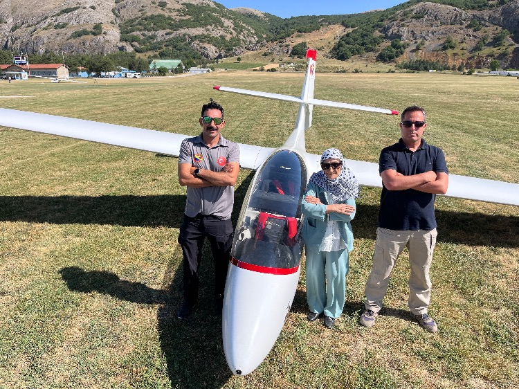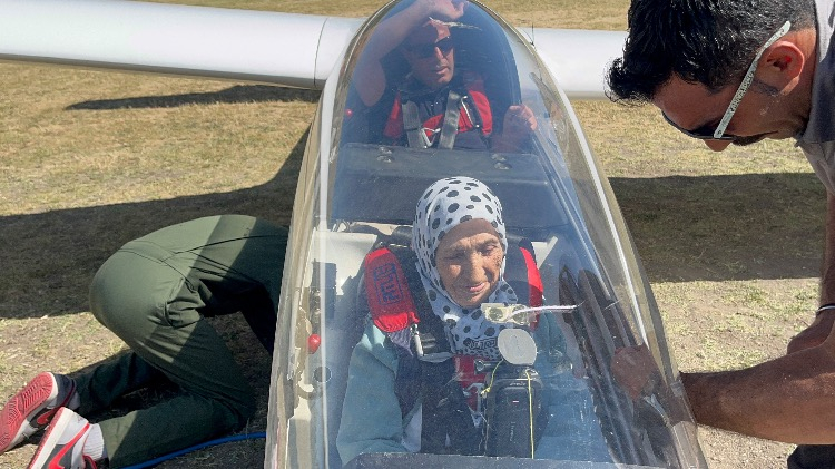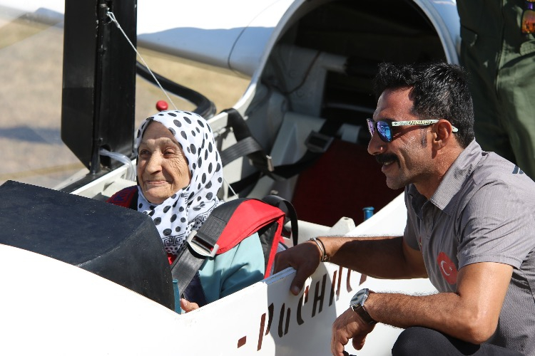 Gençliğinde tır kullanan 83 yaşındaki Mürüvvet Teyze, planörle gökyüzünün tadını çıkardı