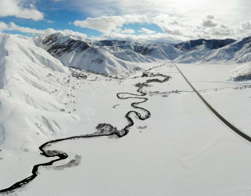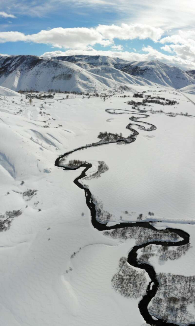 Bitlis`in Tatvan ile Hizan ilçeleri yolu üzerinde bulunan Güzeldere menderesleri kar yağışı ile birlikte kartpostallık görüntüler oluşturdu..