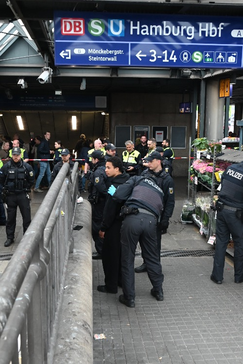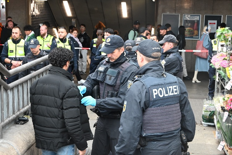 Almanya'nın Hamburg şehrinde dün bıçaklı saldırı gerçekleştirilen merkez tren istasyonunda yolcular aranarak, bıçak, silah ve alkol taşıyanlara işlem yapıldı.