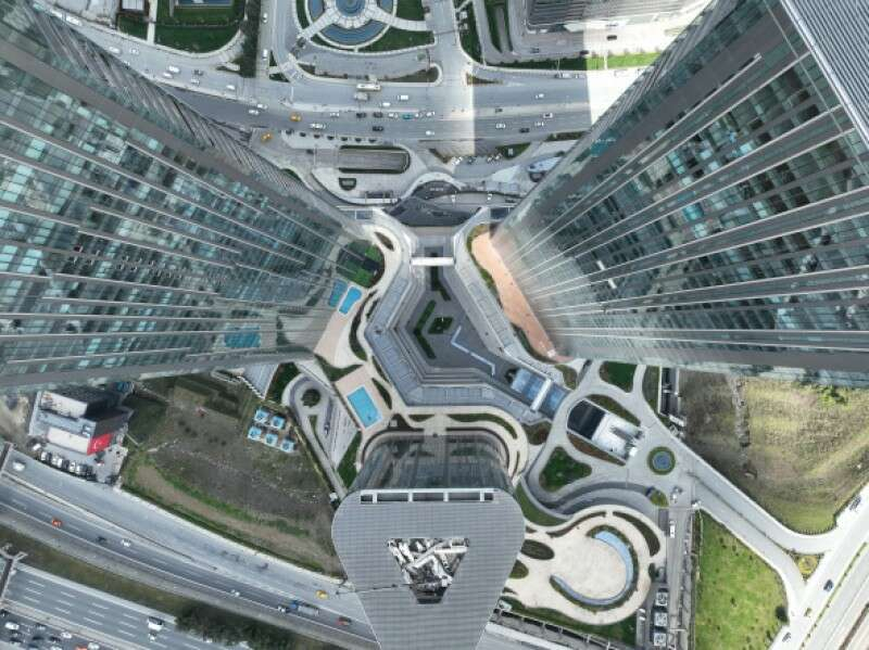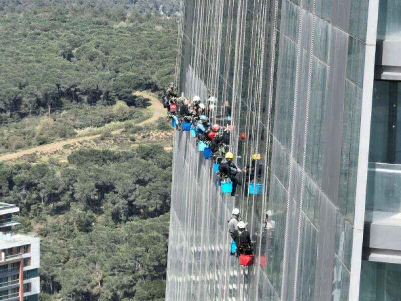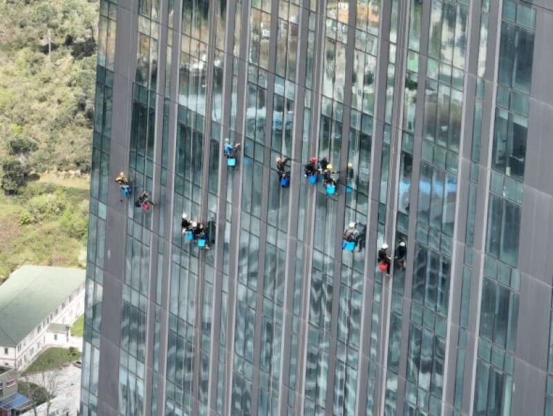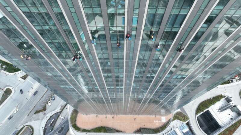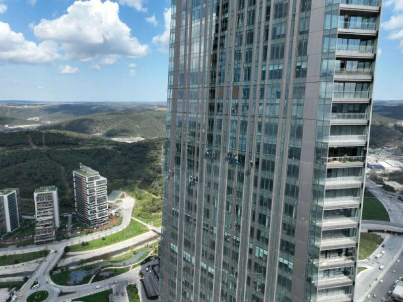 İstanbul`da yüzlerce metre yükseklikte çalışan endüstriyel dağcılarının gökdelen mesaisi izleyenlerin nefesini kesti. Metrelerce yükseklikten iple sarkarak inen işçiler, dış cephe temizliğini yaparken havadan görüntülendi..