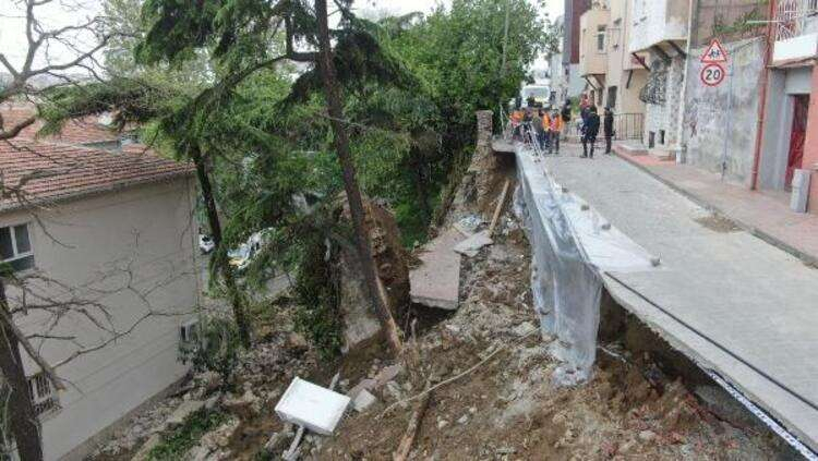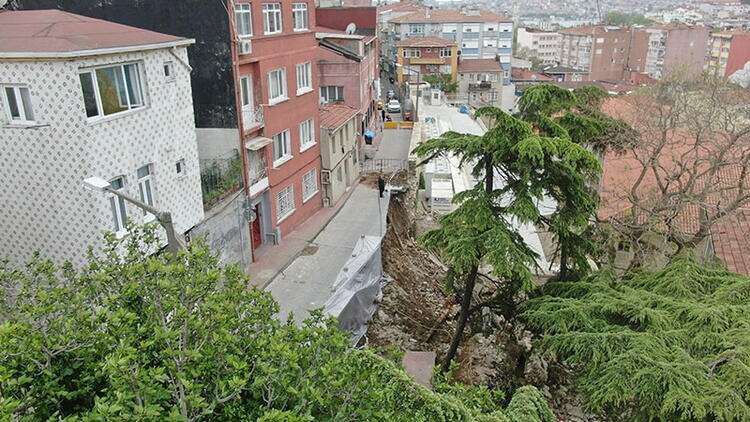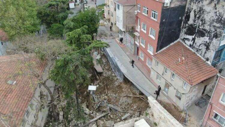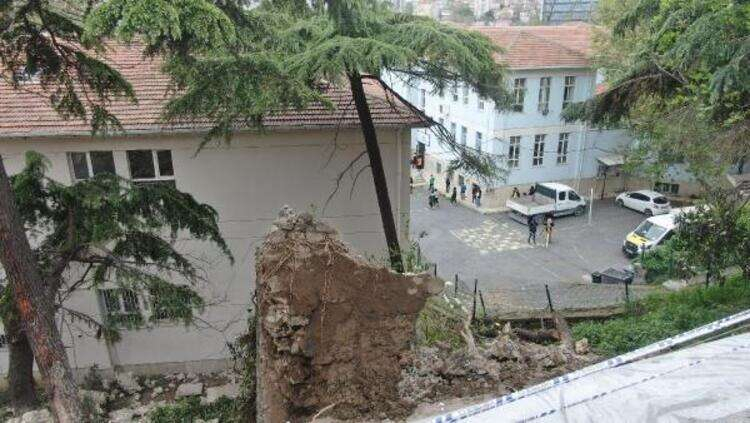 Beyoğlu'nda, su sızıntısının yumuşattığı iddia edilen toprağın kayması nedeniyle yıkılan istinat duvarı, lisenin arka bahçesine devrildi.