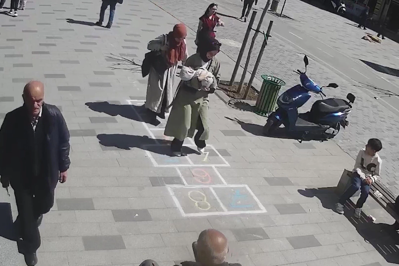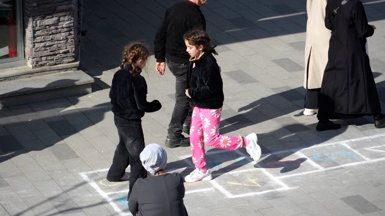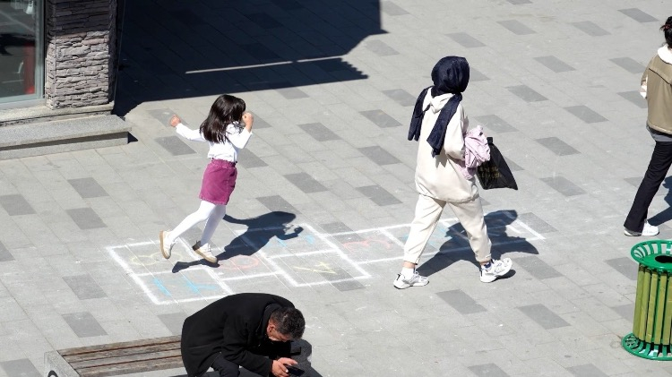 Kaldırımlardaki seksek oyununu gören genç-yaşlı onlarca vatandaş kendini tutamadı