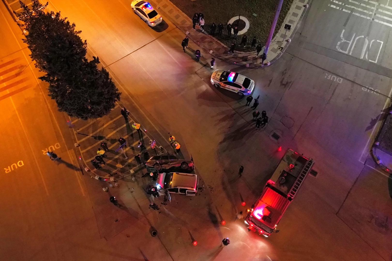 Karaman'da hafif ticari araçla çarpışan otomobil yan yattı: 4 yaralı