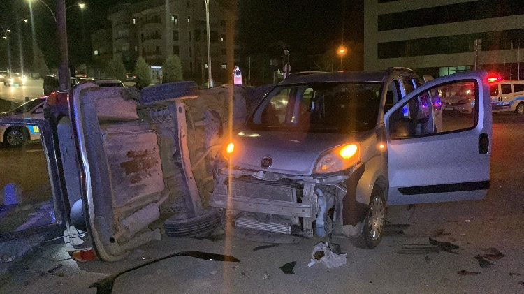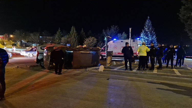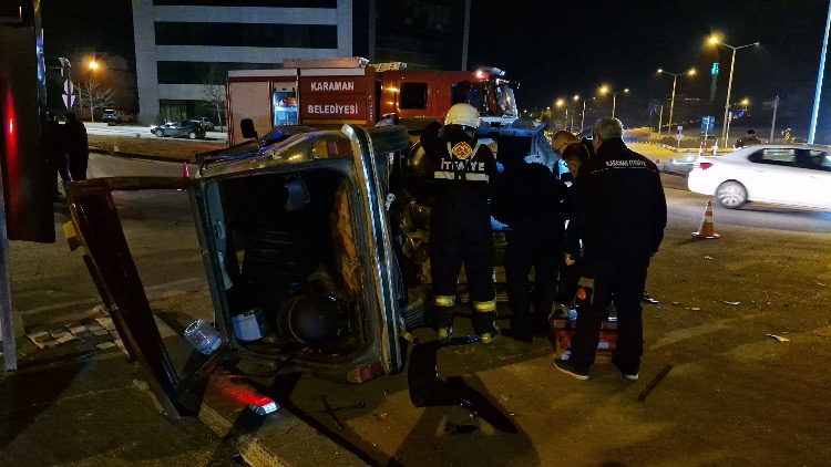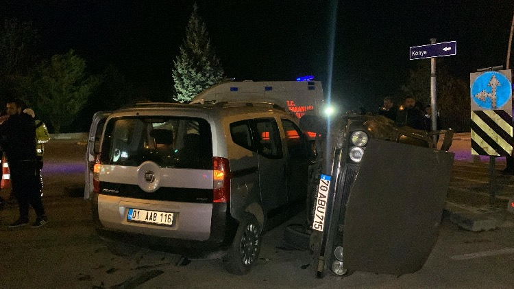 Karaman'da hafif ticari araçla çarpışan otomobilin yan yatması sonucu 4 kişi yaralandı.