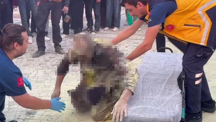 Dehşet anlarına tanıklık eden çevredeki vatandaşlar, yanan adamı söndürmek için müdahalede bulundu.