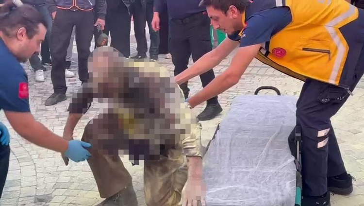 Sağlık ekipleri, vücudunda yanıklar oluşan Erol Muhammet G.'ye ilk müdahaleyi olay yerinde yaptı.