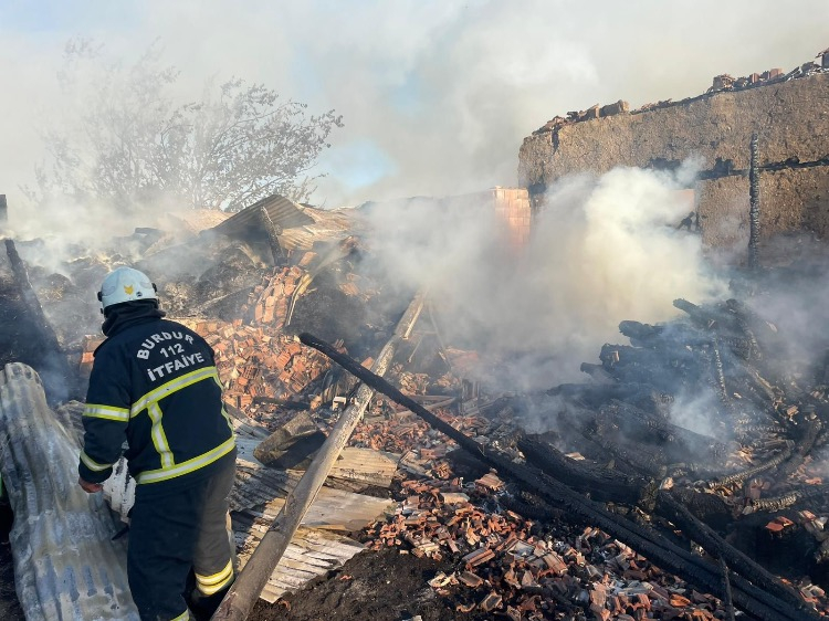Burdur merkeze bağlı İğdeli köyünde kaynak makinesinden sıçrayan kıvılcımların samanları tutuşturması sonucu 2 katlı ahşap ev, araç ve ahır yanarken, ahırda bulunan 3 buzağı da telef oldu. Yangın, saat 17.30 sıralarında Burdur merkeze bağlı İğdeli köyünde meydana geldi. Edinilen bilgilere göre, Mehmet Uçar’a (59) ait 2 katlı ahşap evin bahçesinde kaynak yapıldığı esnada kıvılcımların samanları tutuşturması sonucu yangın çıktı. Kısa sürede büyüyen yangını söndüremeyen ev sahiplerinin ihbarı üzerine bölgeye çok sayıda itfaiye, Orman İşletme Müdürlüğü arazözleri, sağlık ve jandarma ekipleri sevk edildi. Bölgeye gelen itfaiye ve orman ekiplerinin uzun uğraşları sonucu yangın kontrol altına alındı. Yangında 2 katlı ahşap ev, saman balyaları, ahır ve Mehmet Uçar’a ait 15 DG 814 plakalı Opel marka minivan araç yanarken, ahırdaki 3 buzağı telef oldu. Yangın sonrası harabeye dönen ev ve ahır iş makineleri tarafından yıkıldı.