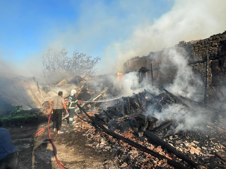 Kaynak makinesinden çıkan yangında ev, araç ve ahır yandı, 3 buzağı telef oldu